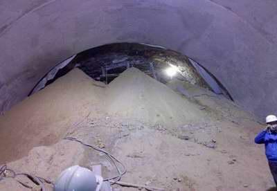 圖2 上白隧道水平旋噴未施工時洞內(nèi)漏砂現(xiàn)場